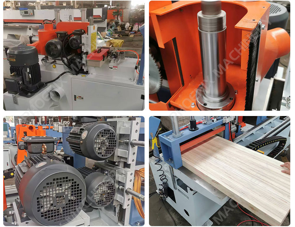 5. Automatic glue coating, the short wooden side of mortise and milling teeth, the long after glue application, the hydraulic pressure is tight, use this machine to connect the long square wood, the joint strength is greater than the strength of the wooden side itself.